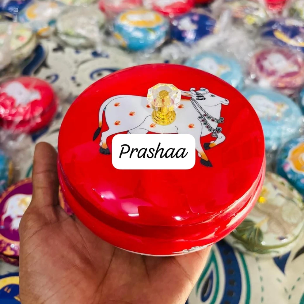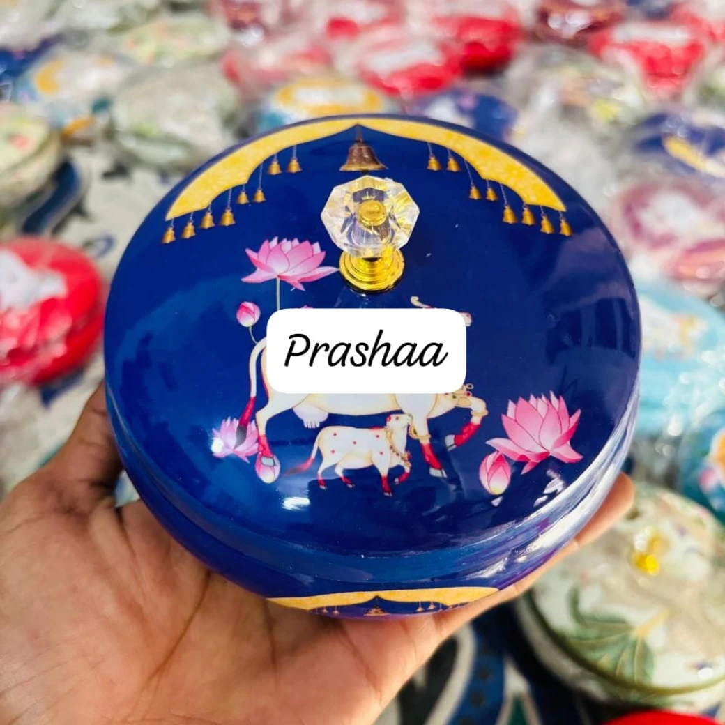 These Pichwai Matkis are small, charming, and perfect for traditional gifting. Featuring beautiful Pichwai-inspired artwork, they add a festive touch to any celebration. Their compact size makes them ideal return gifts for baby showers, engagement functions, and small pooja gatherings. A lovely keepsake that your guests will cherish.